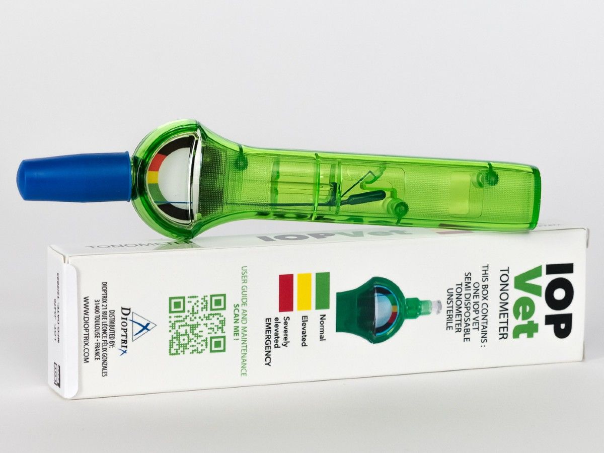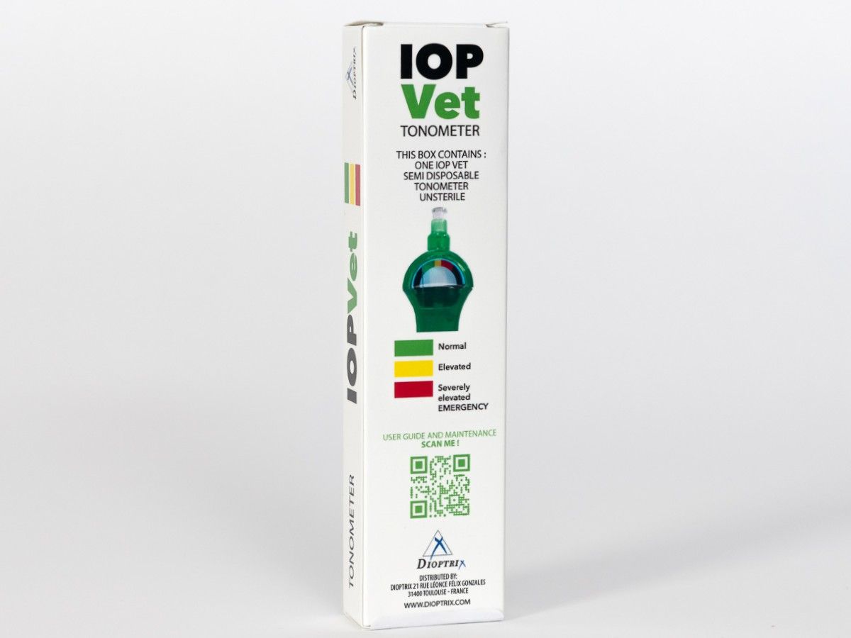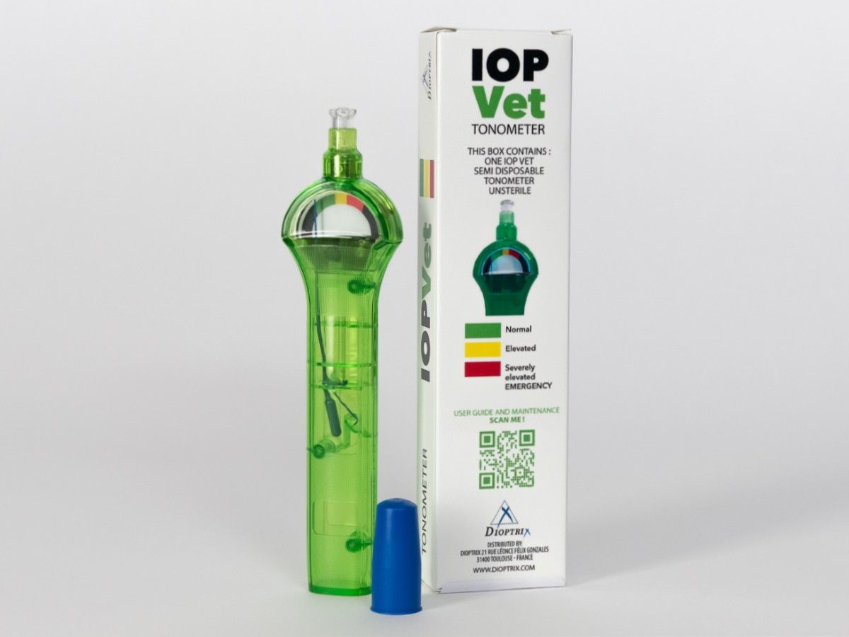 IOP Vet ist ein Tonometer für die Messung vom intraoccularen Augendruck. Das Gerät ist eine günstige Alternative zu teueren Geräten und kann sowohl in der Tierarztpraxis wie auch von den Patientenbesitzer zu Hause angewendet werden.